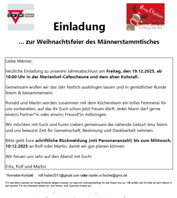 Startseite> News Marienhof> Männerstammtisch am 19.12., 19:00